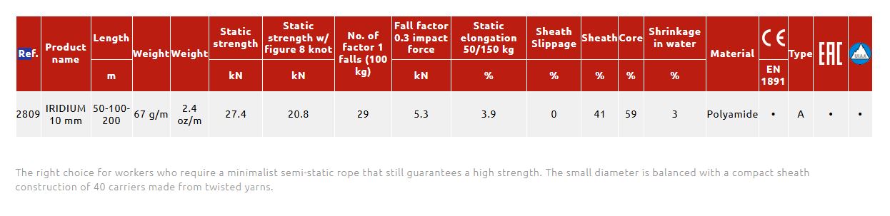 IRIDIUM 10 mm. חבל סמי סטטי גליל 200 מ