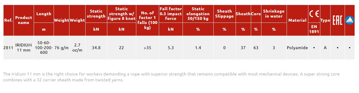 ה-Iridium 11 מ"מ הוא הבחירה הנכונה עבור עובדים הדורשים חבל בעל חוזק מעולה ,תואם לרוב המכשירים המכניים.